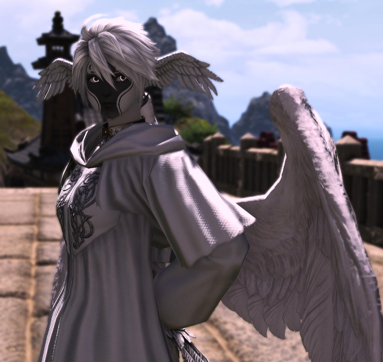 Creating the look of the race in FFXIV requires mods. I will not go into how to install mods or Mare or any of that; instead I will mention here some of the mods I use to achieve this look.The Wefi, both male and female, are based on the female Au ra model. You could theoretically use other models, but I have not tried this.~Scaleless Au ra Females - used to remove the scales, tails, and horns from the female Au ra model.~Meteion Costume - I use the headpiece and legs from this.~ Tail Mod - Overrides the Au ra tail 4 with Meteion's tail. Color can be edited like the wing mod below.~wing mod - I created this in Penumbra tweaking the colors of the Angel or Archangel Wings fashion accessory. Create a new mod by clicking on the + sign on the lower left of the Penumbra Mods interface > Advanced Editing > Import from Screen > select option next to Angel Wings Material #0 that says "Add a copy of this file to the current option" > go to Materials tab > select file > go to color table and change both Diffuse and Specular for all the rows to your desired color.~height mod - I created this in Penumbra. Create a new mod > Advanced editing > Meta manipulation > Racial scaling edit > Raen or Xaela > Female minimum size. Below are the scaling you can use, or make and use a copy of this Google Sheets calculator